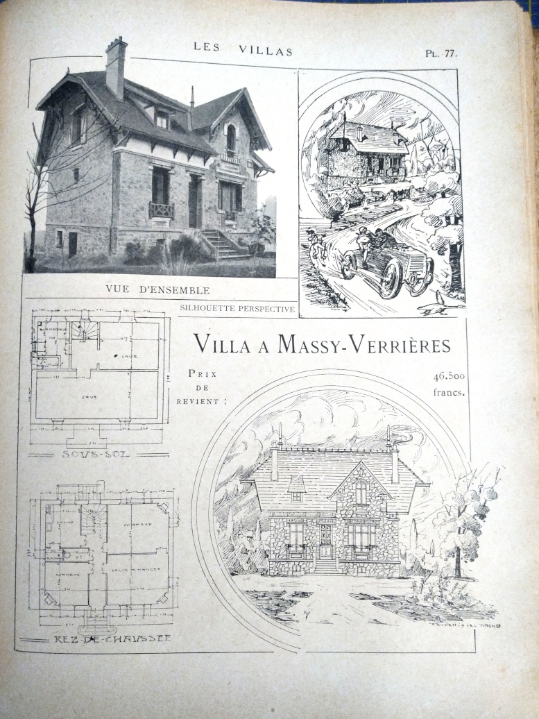 Plus de 300 planches en noir de plans et élévations de maisons, villas, cottages, hôtels particuliers, manoirs, maisons de rapport, clôtures.