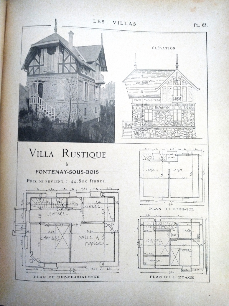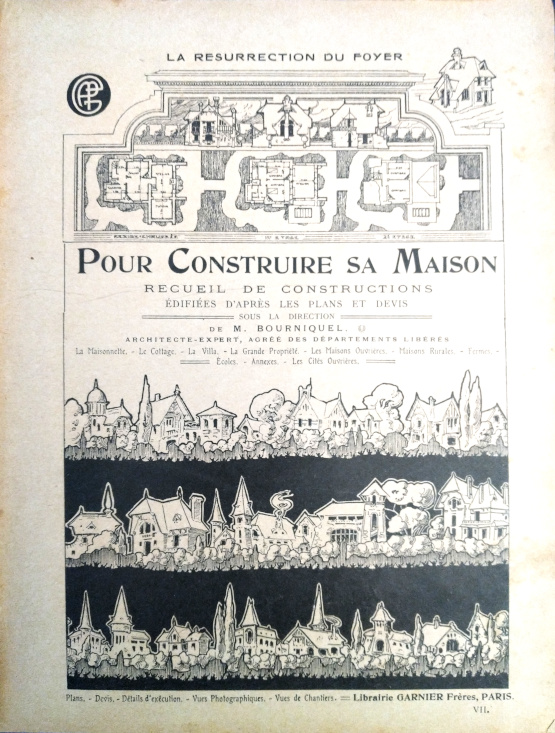 Plus de 300 planches en noir de plans et élévations de maisons, villas, cottages, hôtels particuliers, manoirs, maisons de rapport, clôtures.